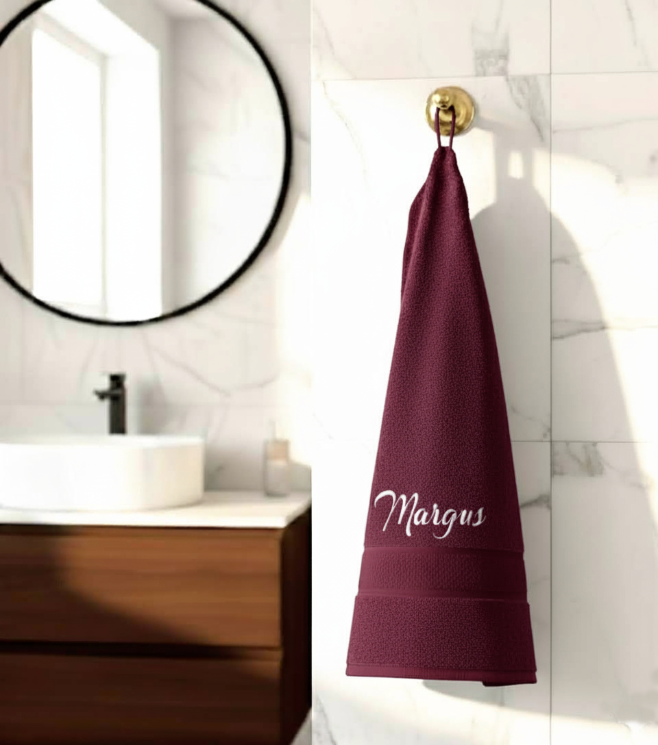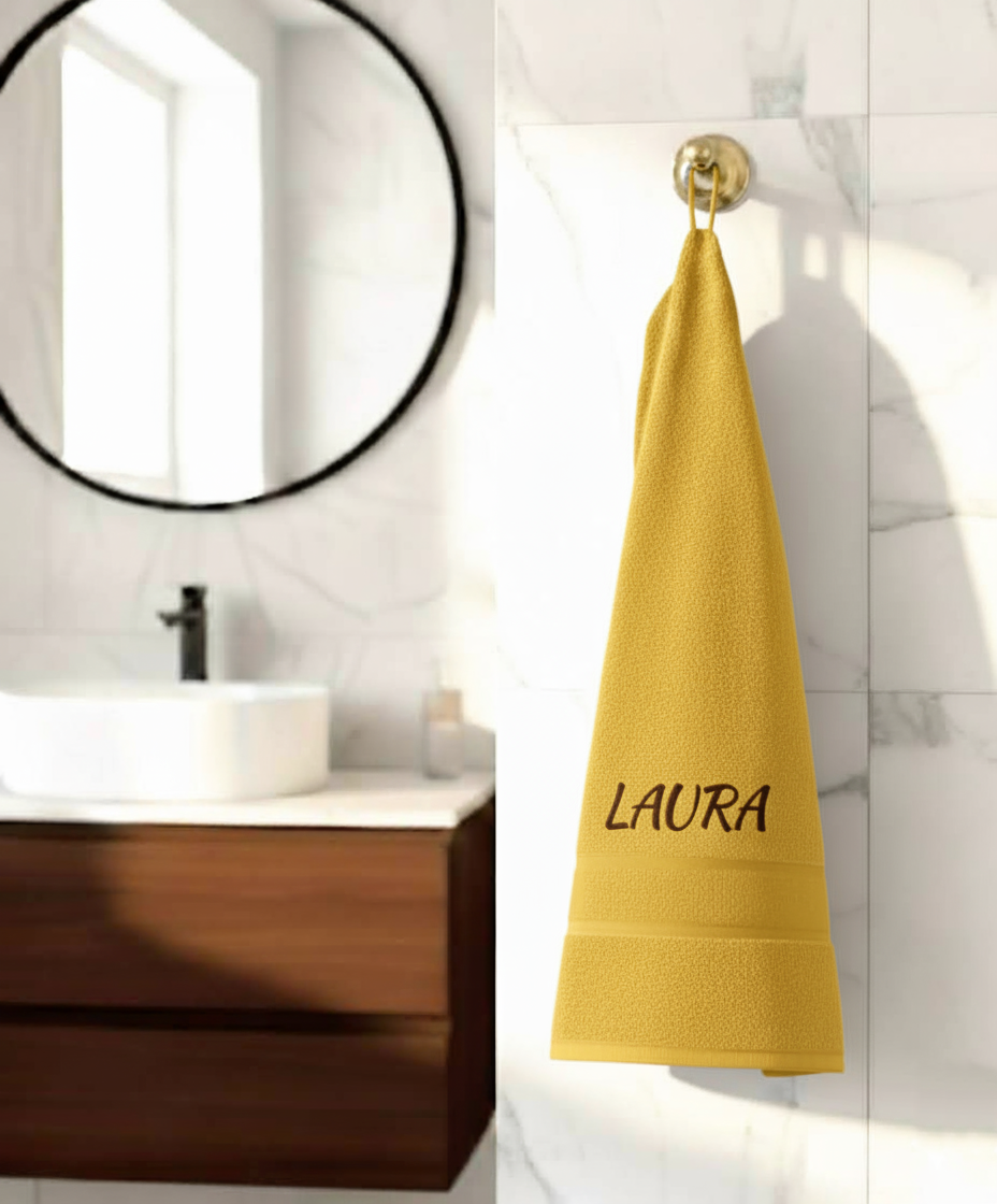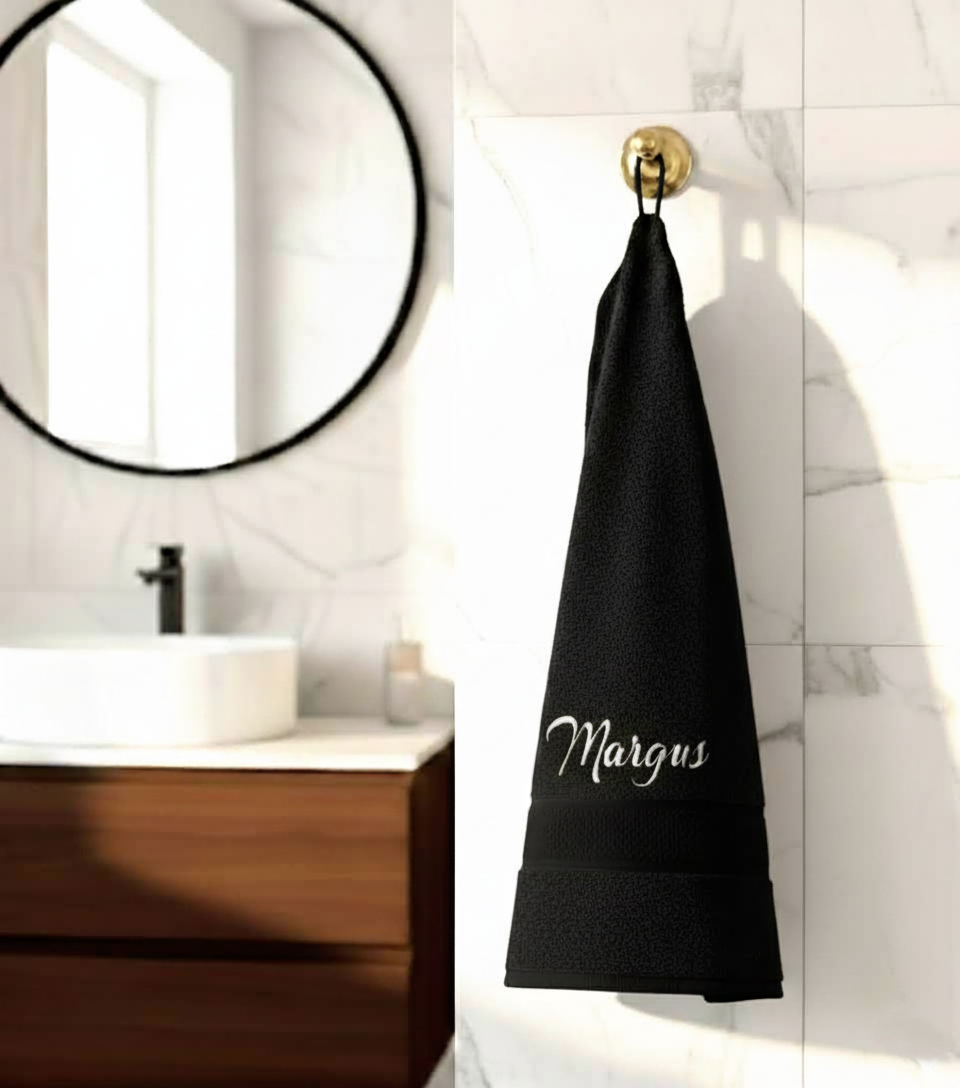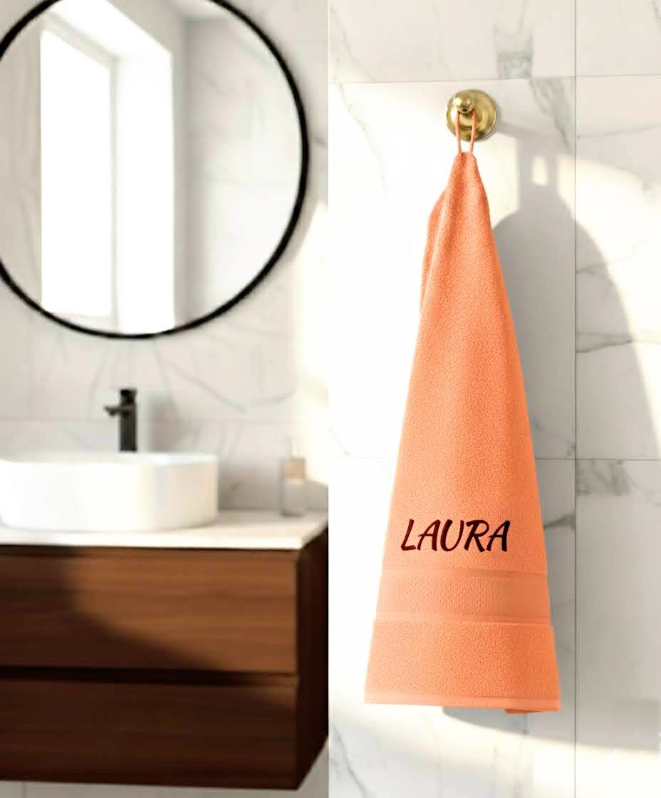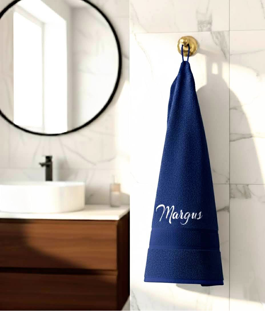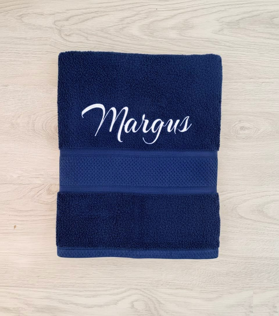 Rätik on saadaval paljudes erinevates toonides. Kirjastiili ja värvi valikuks kliki allpool olevatel ikoonidel ning kirjuta soovitud nimi/tekst nime lahtrisse. Nimi tikitakse rätiku alumisele otsale triibu kohale.